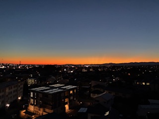 オレンジから濃紺へと緩やかに沈む冬の空のグラデーション―これは静岡に来てから知った。空気が澄んでいて、雲が少ない静岡の冬は夕焼けがきれいに見える条件が整っている。もし清少納言も静岡で暮らしたなら、枕草子の内容も変わっていたのではないかしら。